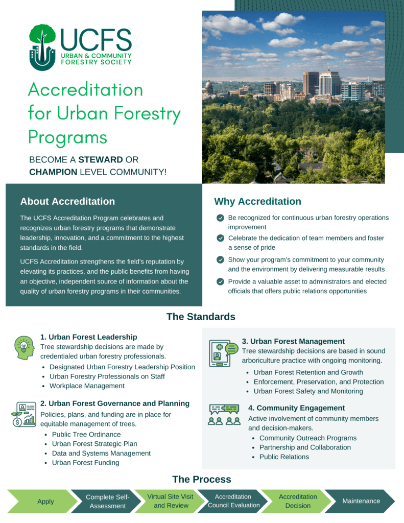 UCFS Accreditation sets a high bar and offers the highest recognition for notable accomplishments in urban forestry. Are you ready to demonstrate excellence in your urban forestry program!